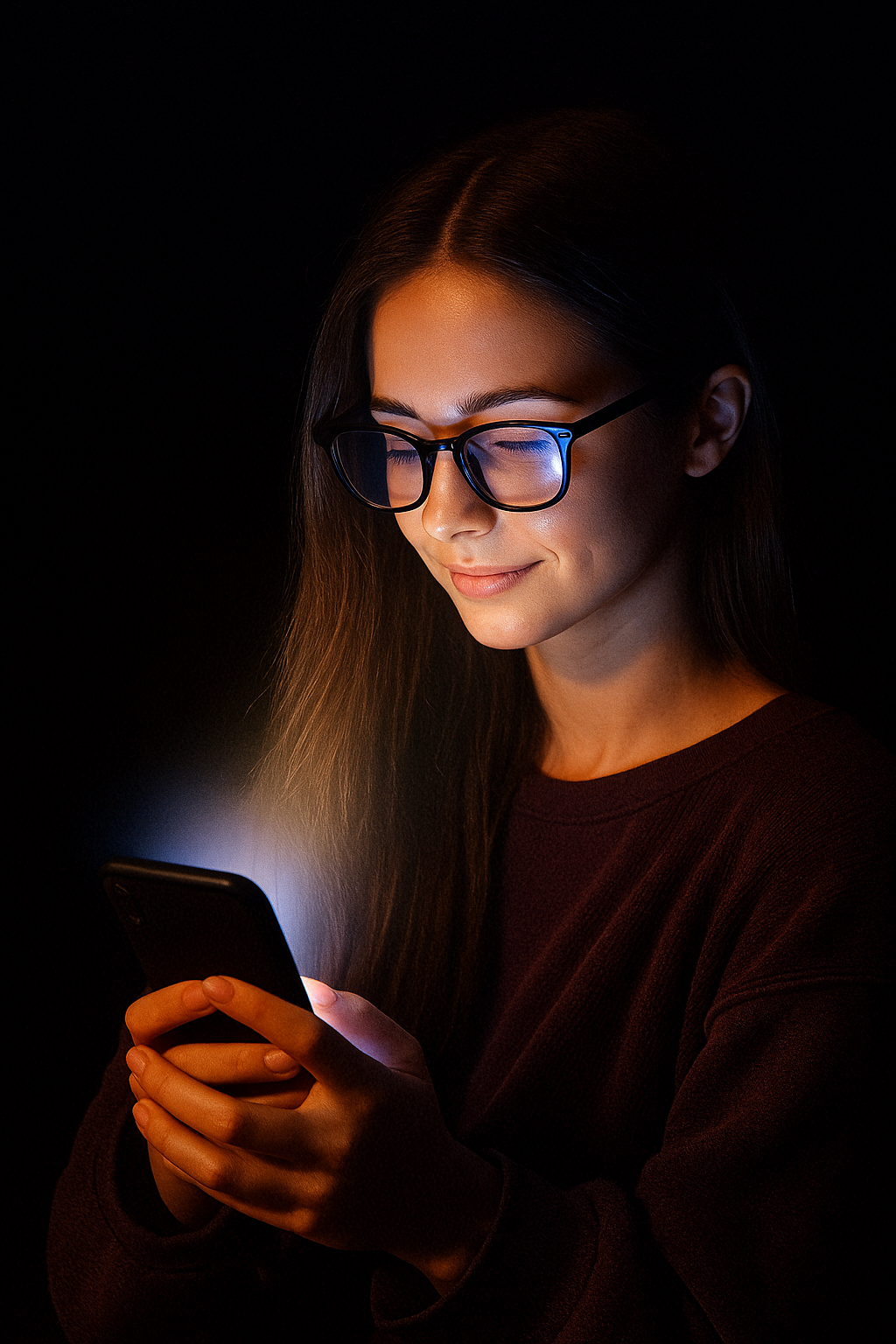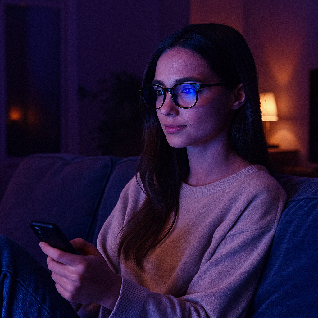 La lumière bleue-violet (HEV 400–455 nm) est la plus énergique du spectre visible. Elle vient du soleil… mais surtout de nos écrans (LED, smartphones, PC, consoles).