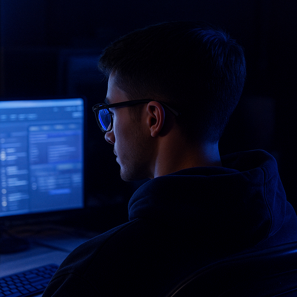 La lumière bleue-violet (HEV 400–455 nm) est la plus énergique du spectre visible. Elle vient du soleil… mais surtout de nos écrans (LED, smartphones, PC, consoles).